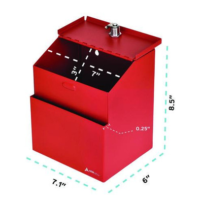 Wall Mountable Steel Suggestion Secure Drop Box with Key, 7 x 6 x 8.5, Stainless Steel 304, Red
