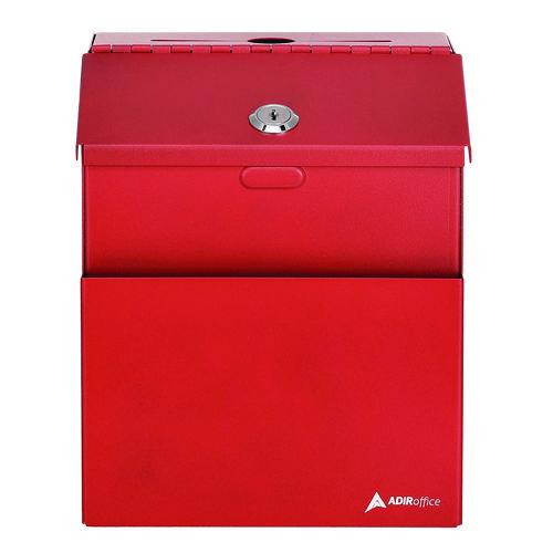 Wall Mountable Steel Suggestion Secure Drop Box with Key, 7 x 6 x 8.5, Stainless Steel 304, Red