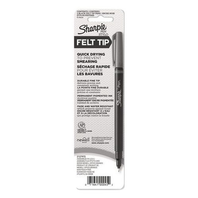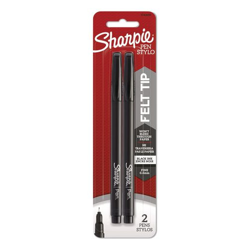Water-Resistant Ink Porous Point Pen, Stick, Fine 0.4 mm, Black Ink, Black Barrel, 2/Pack