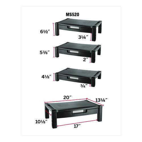 Wide Deluxe Two-level Monitor Stand With Drawer, 20" X 13.25" X 3" To 6.5", Black, Supports 50 Lbs