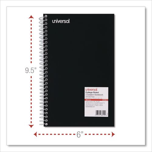 Wirebound Notebook, 3 Subject, Medium/college Rule, Black Cover, 9.5 X 6, 120 Sheets