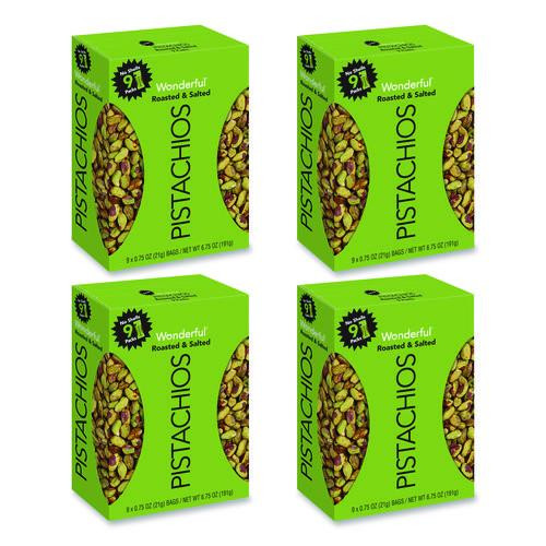 Wonderful No Shells Pistachios, Roasted and Salted, 0.75 oz Bag, 9 Bags/Box, 4 Boxes/Carton