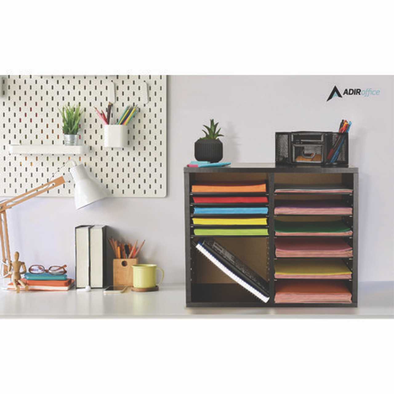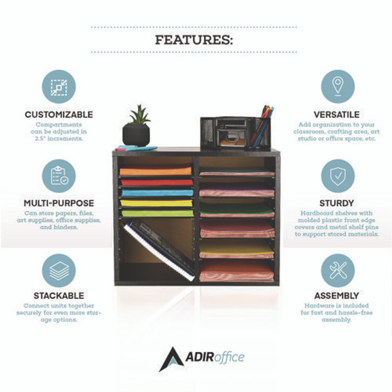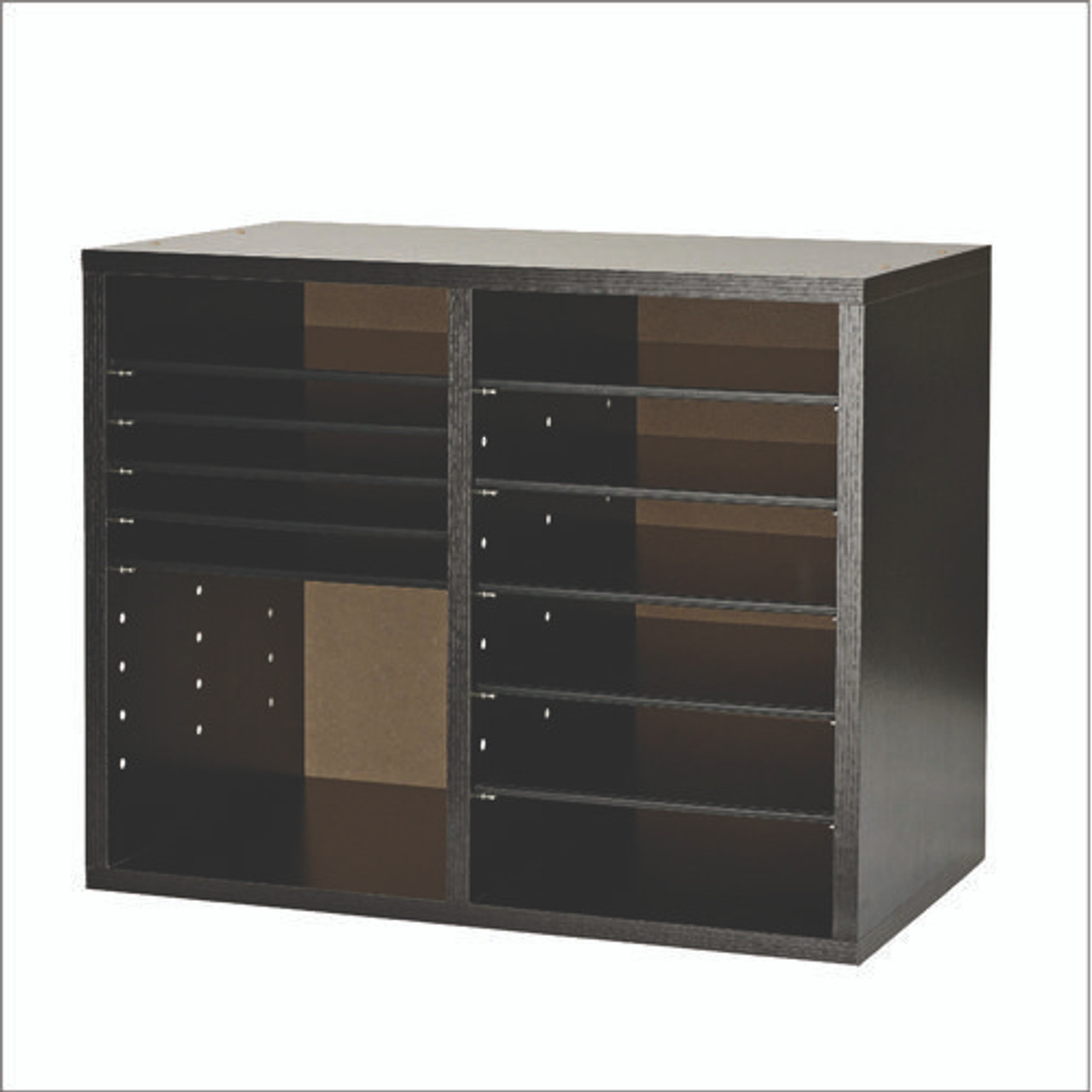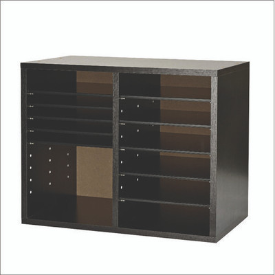 Wood Adjustable 12 Compartment Literature Organizer, 12 Sections, Letter Size, 20 X 11.8 X 16.3, Black