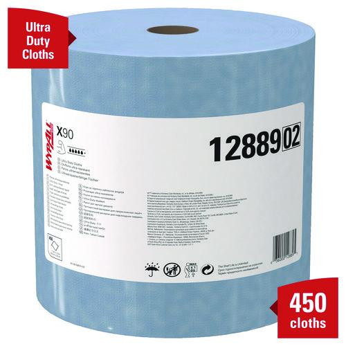 X90 Cloths, Jumbo Roll, 2-ply, 11.1 X 13.4, Denim Blue, 450/roll