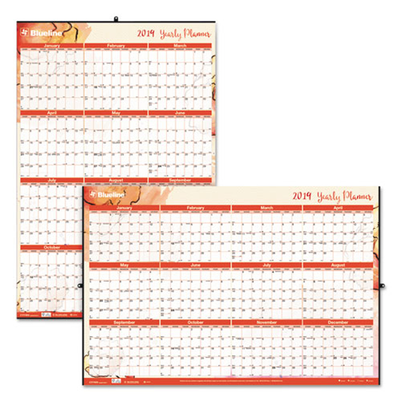 Yearly Laminated Wall Calendar, Autumn Leaves Watercolor Artwork, 36 X 24, White/sand/orange Sheets, 12-month (jan-dec): 2023