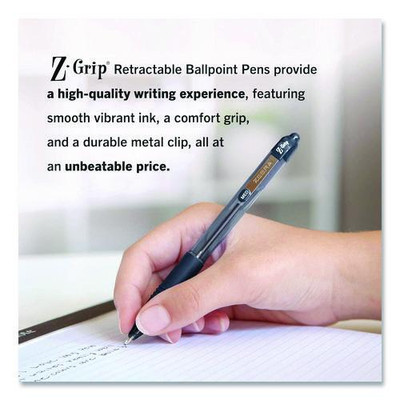 Z-grip Ballpoint Pen, Retractable, Medium 1 Mm, Black Ink, Clear/black Barrel, 18/pack