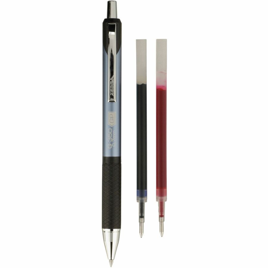 The G-350 Retractable Pen features gel ink with rapid-dry technology that dries in less than a second for a smooth, skip-free writing experience without any smears or smudges. Metal barrel has a textured, rubberized grip for comfortable writing. Refillable design allows you to quickly replace your ink for cost-efficient use. It includes two bonus refills in blue and red. Pen with a 0.7mm point size is perfect for avid writers, business professionals, lefties and more.