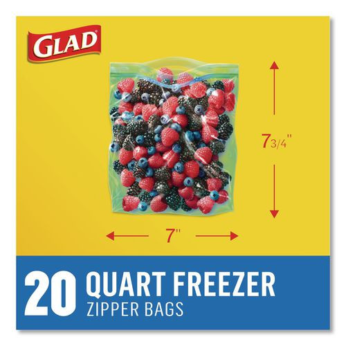 Zipper Food Storage Plastic Bags, Freezer Bags, Quart Size, 7.75 x 8.44, Clear, 20 Bags/Box, 12 Boxes/Carton