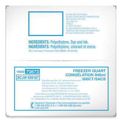 Zipper Freezer Bags, 32 oz, 7" x 7.75", Clear, 300/Carton